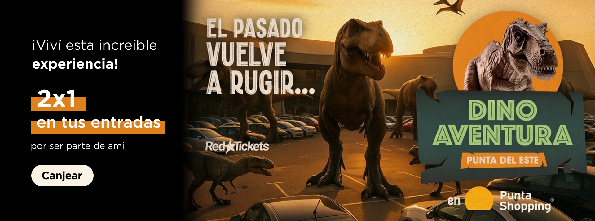 Sorteamos 1 Pack Familiar de 4 entradas para Dino Aventura en Punta Shopping. Los ganadores pueden seleccionar fecha y horario en el cual desean concurrir al evento, siempre y cuando haya disponibilidad y no estén agotadas las entradas.
